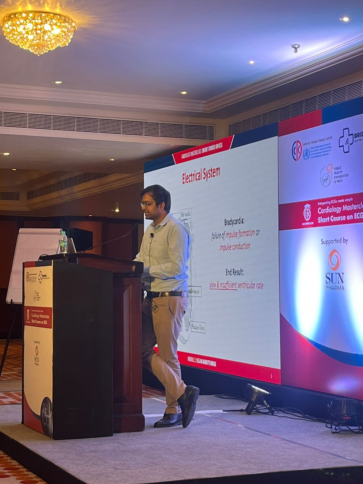 The ECG course, a national-level program curated by prominent cardiologists nationwide, aims to enhance physicians’ skills in accurately interpreting ECGs. This upskilling occurs through case-based learning and knowledge sharing on the latest advancements in the field. The course spans three months and comprises three modules.